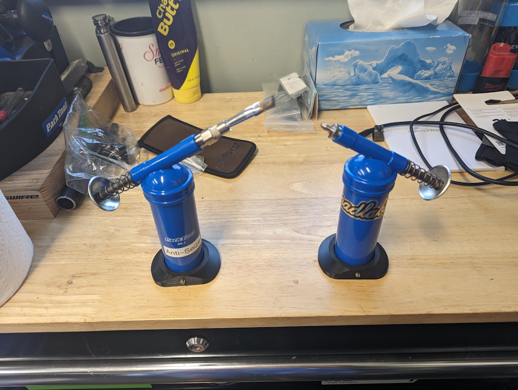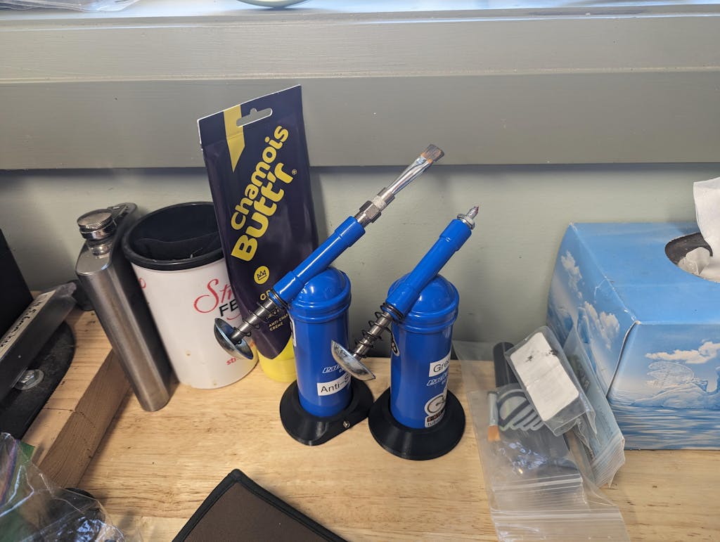 3d Printed base for Dualco and similar style grease guns. Prevents top-heavy grease gun from tipping over, and has one flat side to allow tabletop storage against a surface, wall, or toolbox. This tool is especially helpful when grease-gun is less than half-full as the tool becomes more top-heavy as the contents are dispensed.